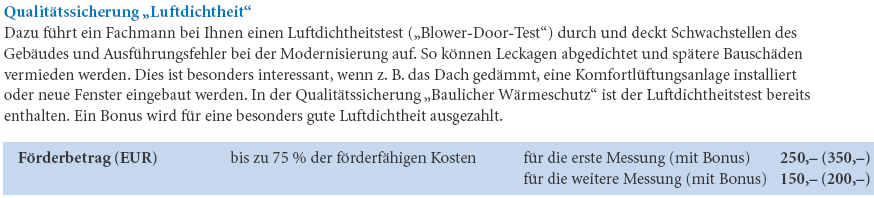 Stand: | Förderbetrag für Blower-Door-Test: |