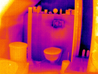 „Gute Nacht – und kühle Träume!“ Dachfenster mit darunter befindlichem Gästebett. Die Wechsel um das Dachfenster waren nicht mit Wärmedämmung versehen, die luftdichte Folie nicht fachgerecht verklebt! Außentemperatur: - 6°C Minimale Innentemperatur: - 2°C