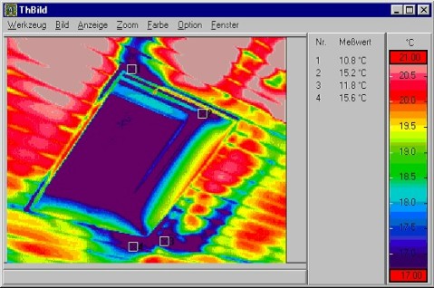 Meteodaten: Aussentemperatur: + 5 °C, Bedeckter Himmel, keine Wind Ansicht Velux-Dachflächenfenster gegen Norden mit Normaldruck |