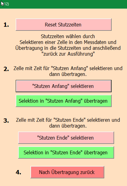 3.) Stutzzeitenvorgabe geht jetzt auch über Selektierung von Zellen in den Messdaten Unter der Schaltfläche |