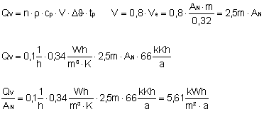 Berechnung des Lüftungswärmebedarfs: Berechnung des Jahresheizwärmebedarfs nach EnEV, Anhang 1, Tabelle 2, Zeile 1