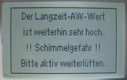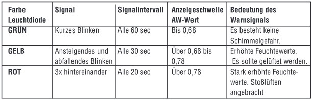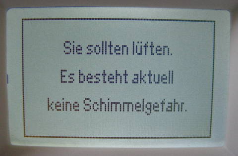 positioniert ist, während das zweite in den Raum gerichtet ist. Das Gerät wird mit zwei Nägeln oder Schrauben direkt an der gefährdeten Wand aufgehängt. Desweiteren können Sie eine Reihe von wichtigen Informationen abrufen. Frühwarnsystem zur Schimmelpilz-Prävention Durch mehrmaliges Drücken des Displaytasters können die unten dargestellten verschiedenen Anzeigemodi aufgerufen werden. Dank der gleichzeitig aktivierten Hintergrundbeleutung ist das Displays gut lesbar.