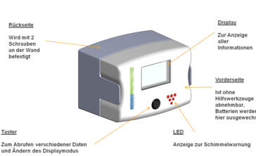 Schimmelpreventer – das neuartige Frühwarngerät für die Schimmelprävention. Damit sich Schimmelpilz gar nicht erst an den Wänden ansiedeln kann! Lieferumfang: Gerät mit beiliegenden Batterien, Bedienungsanleitung, Broschüre "Fakten und Hintergrundinformationen über Schimmelpilze in Gebäuden" Stückpreis 73,- Euro Ich berechne keine Versandkosten. Als Kleinunternehmer im Sinne von § 19 Abs. 1 UStG berechne ich seit 1.1.2021 keine Umsatzsteuer. Bestellformular: | ||||||||||||||||||||||||||||||