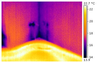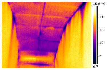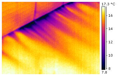 Typische "Kaltluftfahnen", die die Strömungsrichtung der kalten Luft anzeigen. Die kalte Luft streicht auf der dem Betrachter zugewandten Seite an der Wand entlang! |